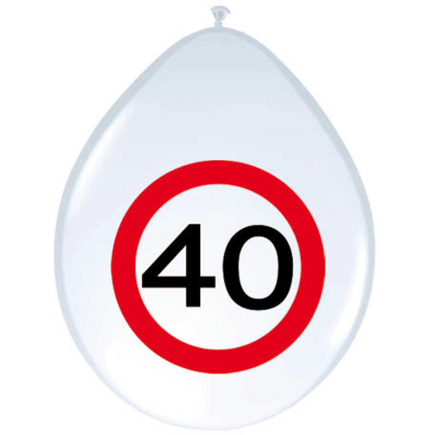 Ballon 'Verkeersbord 40 jaar' 12inch/30cm, 8st - Vekemans Feestwinkel