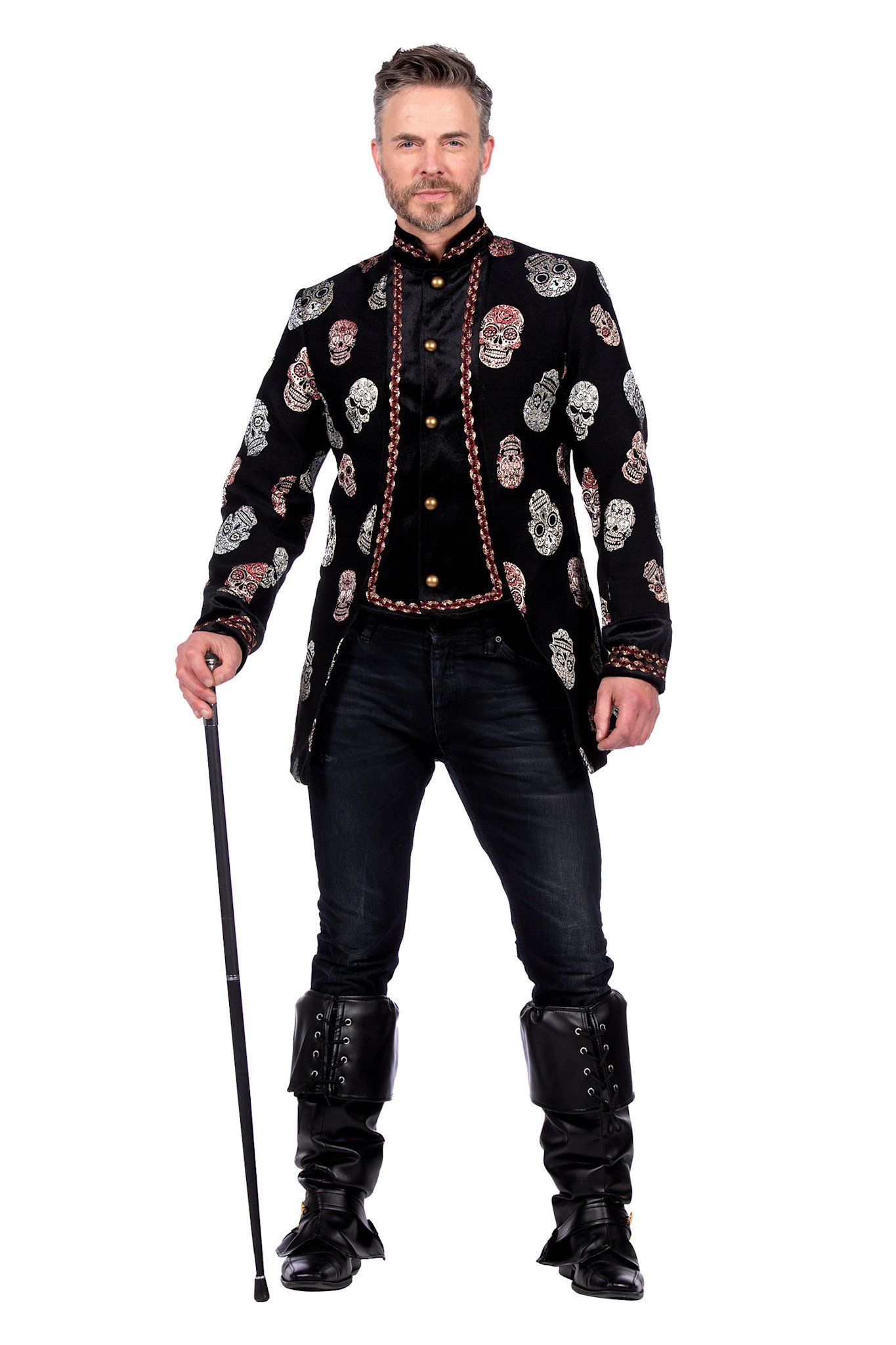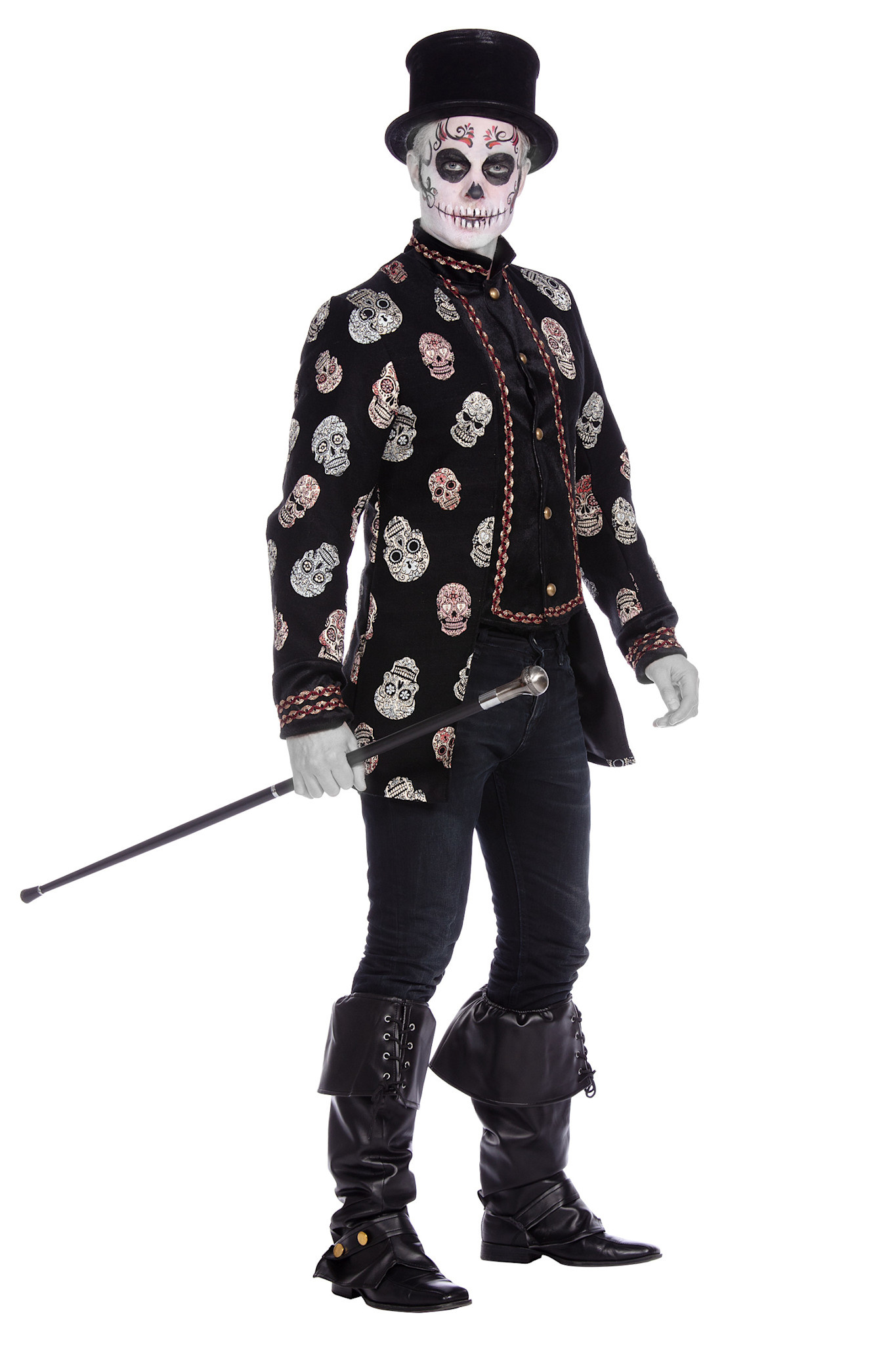 De jas heeft een hoogwaardige afwerking, voelt stevig aan en biedt een comfortabele pasvorm. Draag hem met een zwarte broek en laarzen voor een mysterieuze look, of voeg schmink en accessoires toe voor een volledige Day of the Dead outfit. Ideaal voor Halloween, gothic feesten, carnaval of thema-avonden.