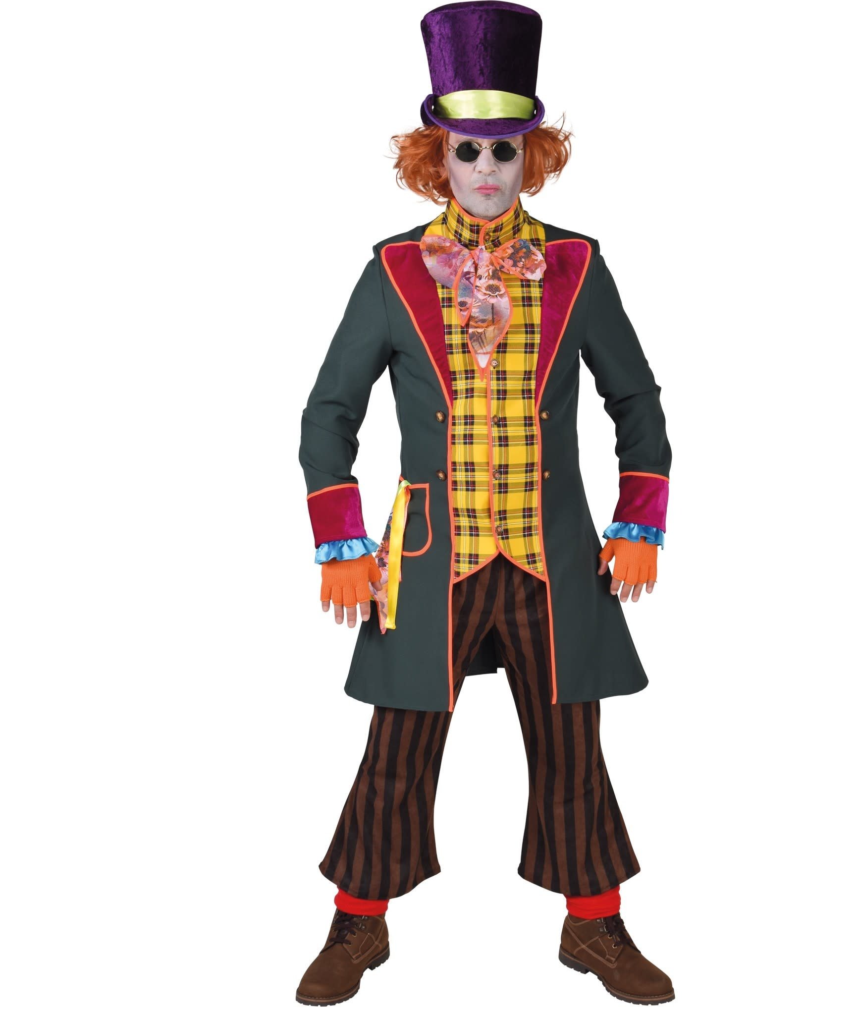 Dit Mad Hatter kostuum bestaat uit een combinatie van broek jas en vest met een speelse en excentrieke uitstraling De felle kleuren en opvallende patronen zorgen voor een unieke look die meteen herkenbaar is Ideaal voor thema’s zoals Alice fantasy en sprookjes.