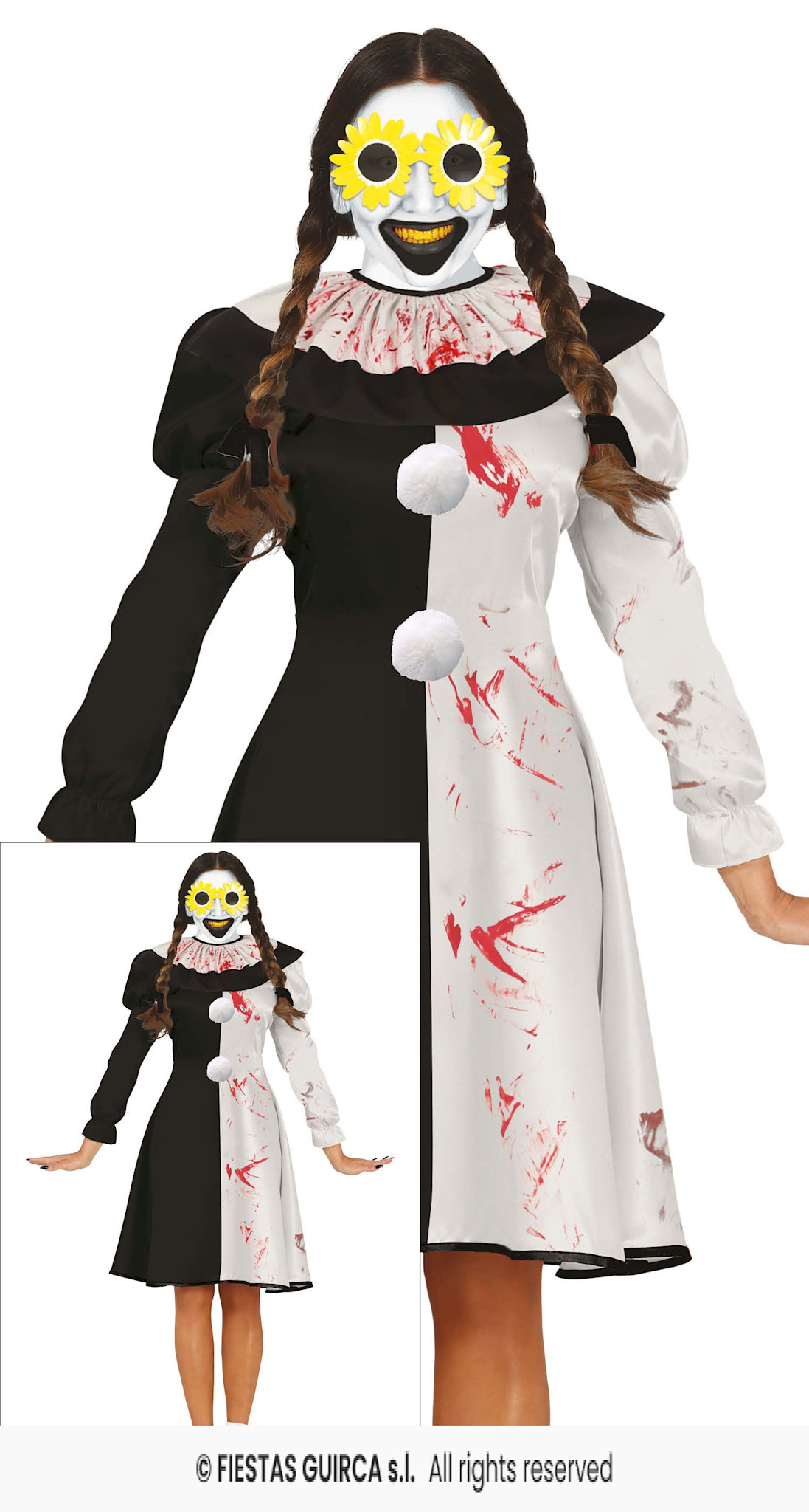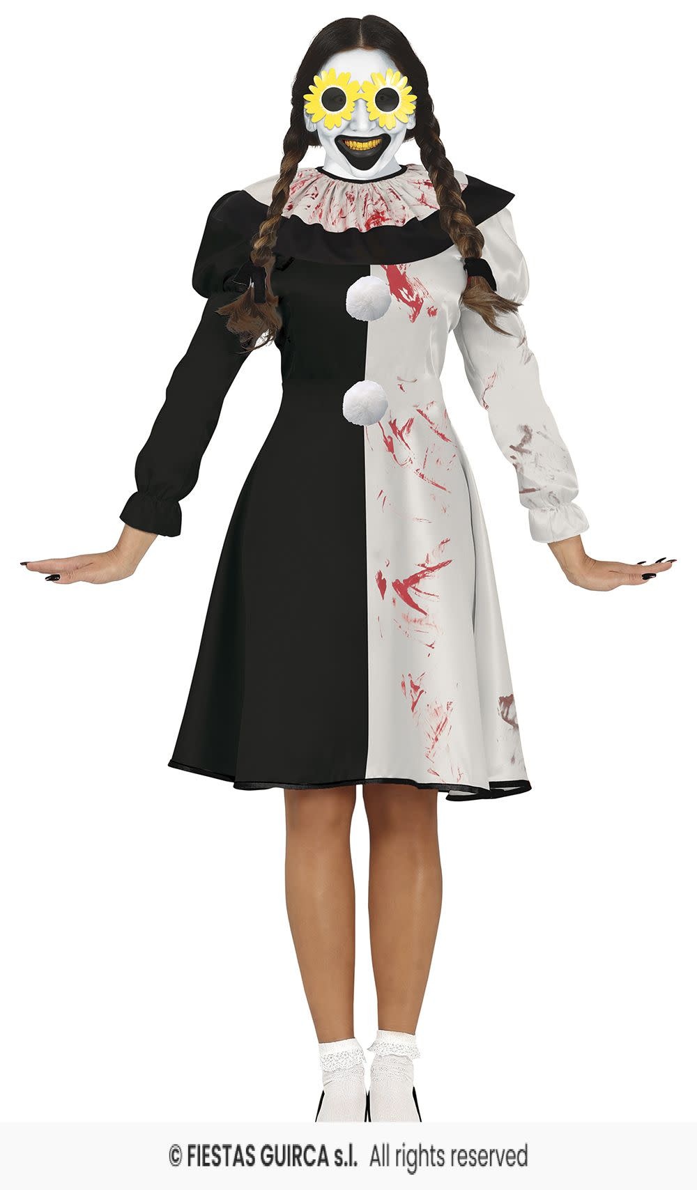 Halloween clown kleedje dame zwart/wit - Vekemans Feestwinkel