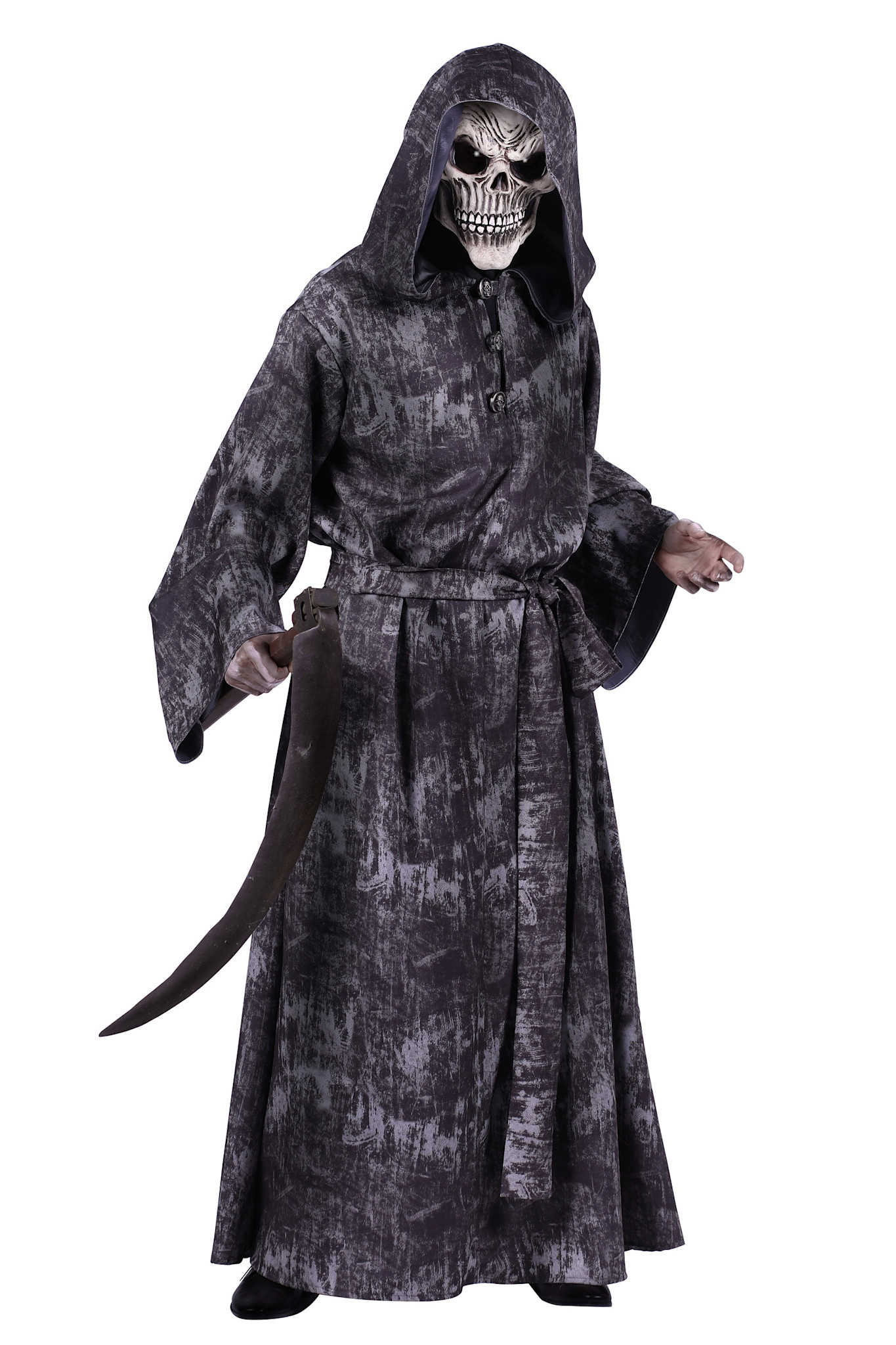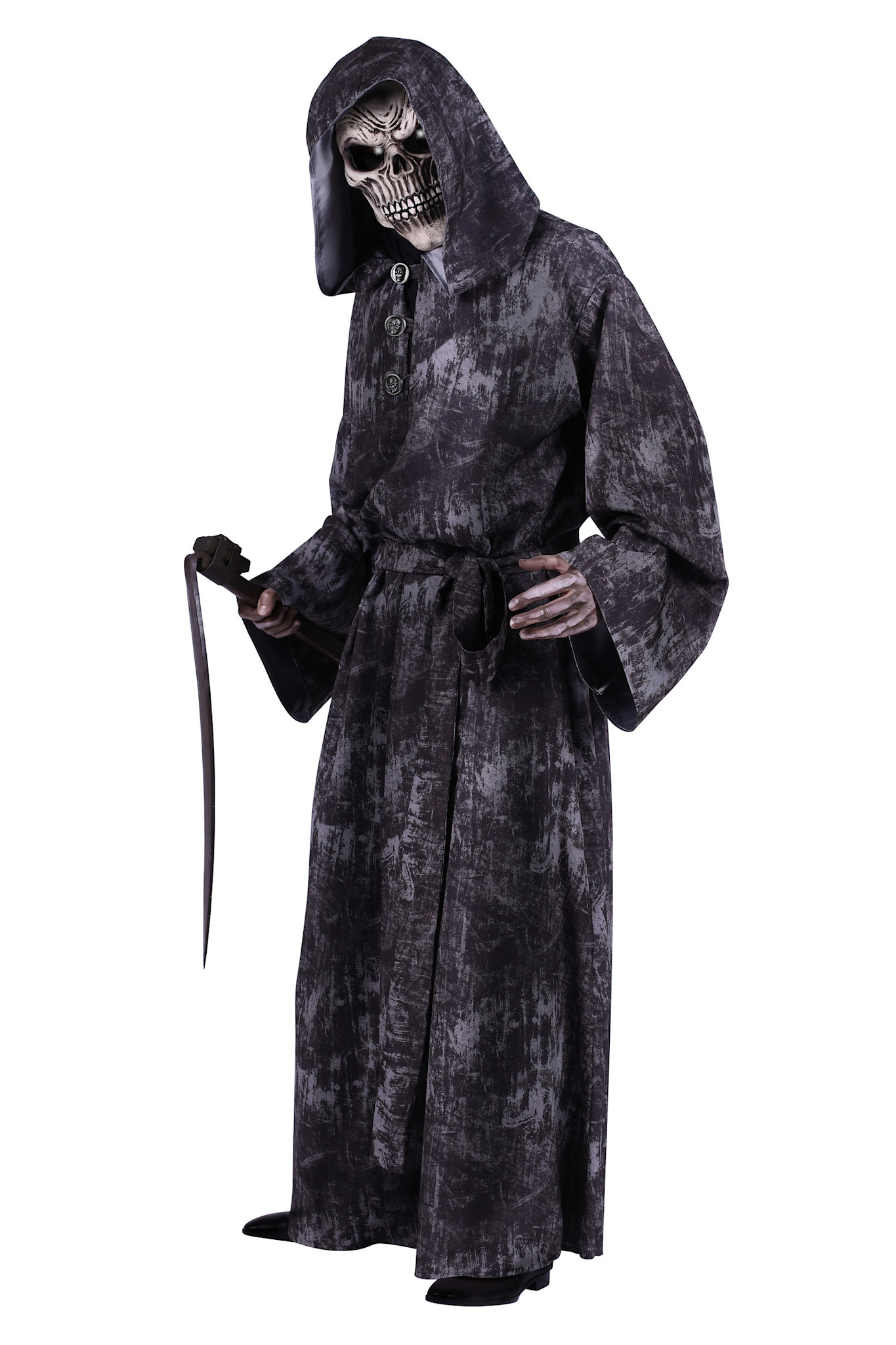 Stap in de rol van de mythische Dood met dit enge Grim Reaper kostuum. Het lange zwarte gewaad met capuchon en schedelmasker zorgt voor een huiveringwekkende uitstraling. Met een zeis of ander accessoire (niet inbegrepen) maak je de look compleet. Perfect voor Halloween, spooktochten of enge themafeesten. Dit kostuum is comfortabel om te dragen en geschikt voor iedereen die een echt klassiek en angstaanjagend karakter wil neerzetten