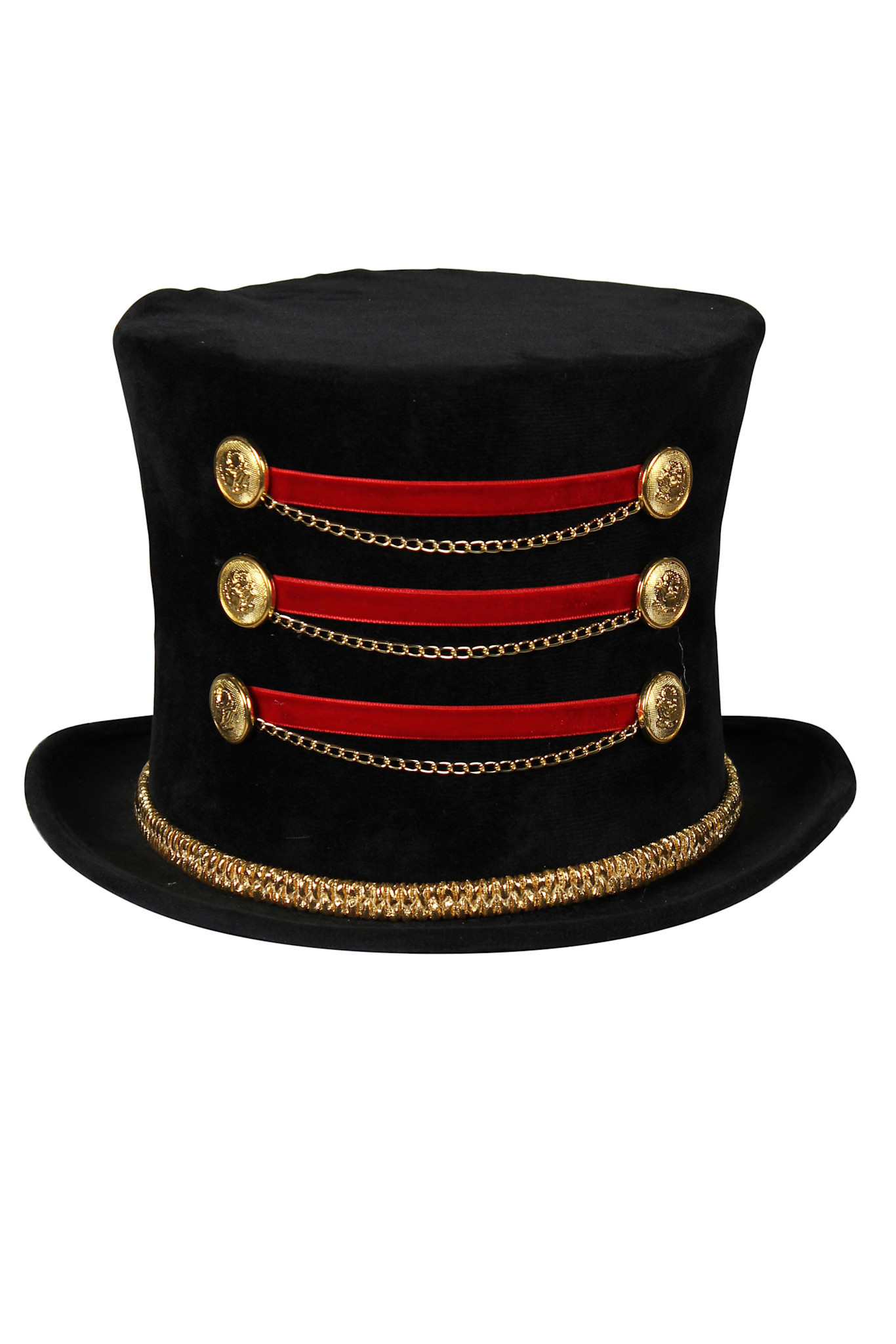 De Hoge hoed circusdirecteur luxe uitvoering is een chique en opvallende feesthoed voor carnaval, circus- en themafeesten. Deze luxe hoge hoed is uitgevoerd in zwart en rijk afgewerkt met rode banden, gouden knopen en decoratieve kettinkjes, wat zorgt voor een klassieke en statige uitstraling. Perfect als accessoire bij een circusdirecteur kostuum, ringmaster outfit of showkostuum. Ideaal voor carnaval, optochten, themafeesten, theater en evenementen waar uitstraling telt.