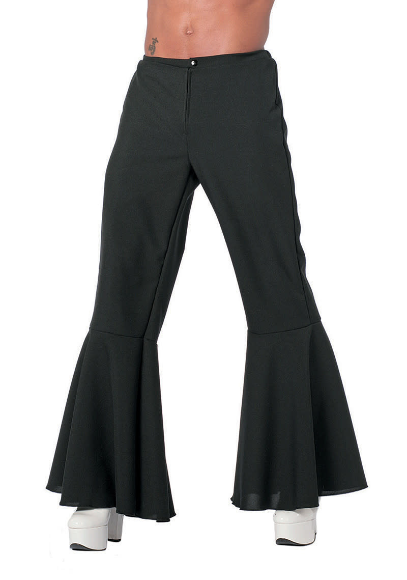 Laat de discovibes herleven met deze stijlvolle zwarte herenbroek uit de jaren 70 en 80. Deze retro klassieker combineert een strakke taille met wijd uitlopende pijpen, perfect om te dansen op de dansvloer of indruk te maken op een verkleedfeest.