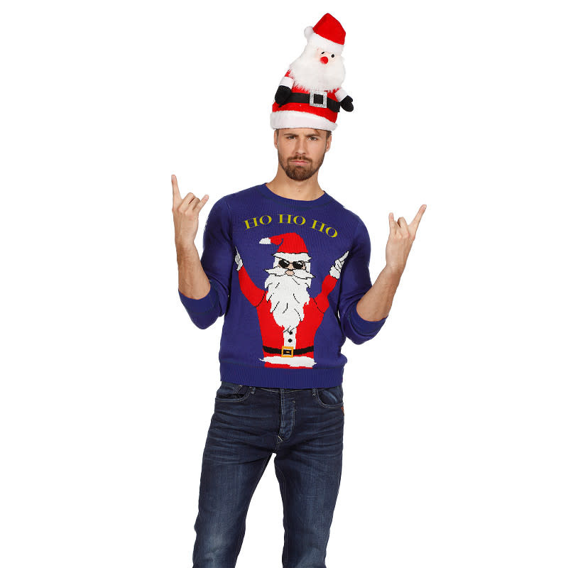 Kersttrui blauw Rocking Santa - Vekemans Feestwinkel