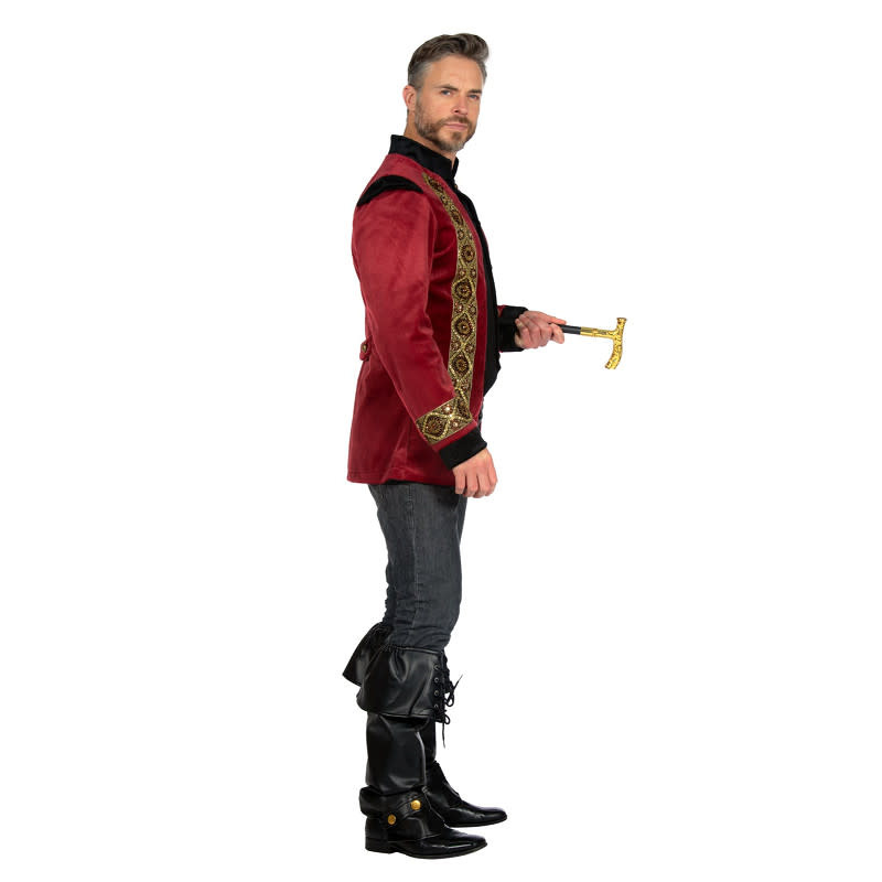 Maak indruk met deze middeleeuwse burchtheer piraten jas in rood, een stijlvolle kostuumjas die perfect past bij zowel piraten- als renaissance-thema’s. De diepe rode kleur in combinatie met decoratieve goudkleurige details geeft de jas een luxe en gezaghebbende uitstraling, passend bij een kapitein, edelman of burchtheer.