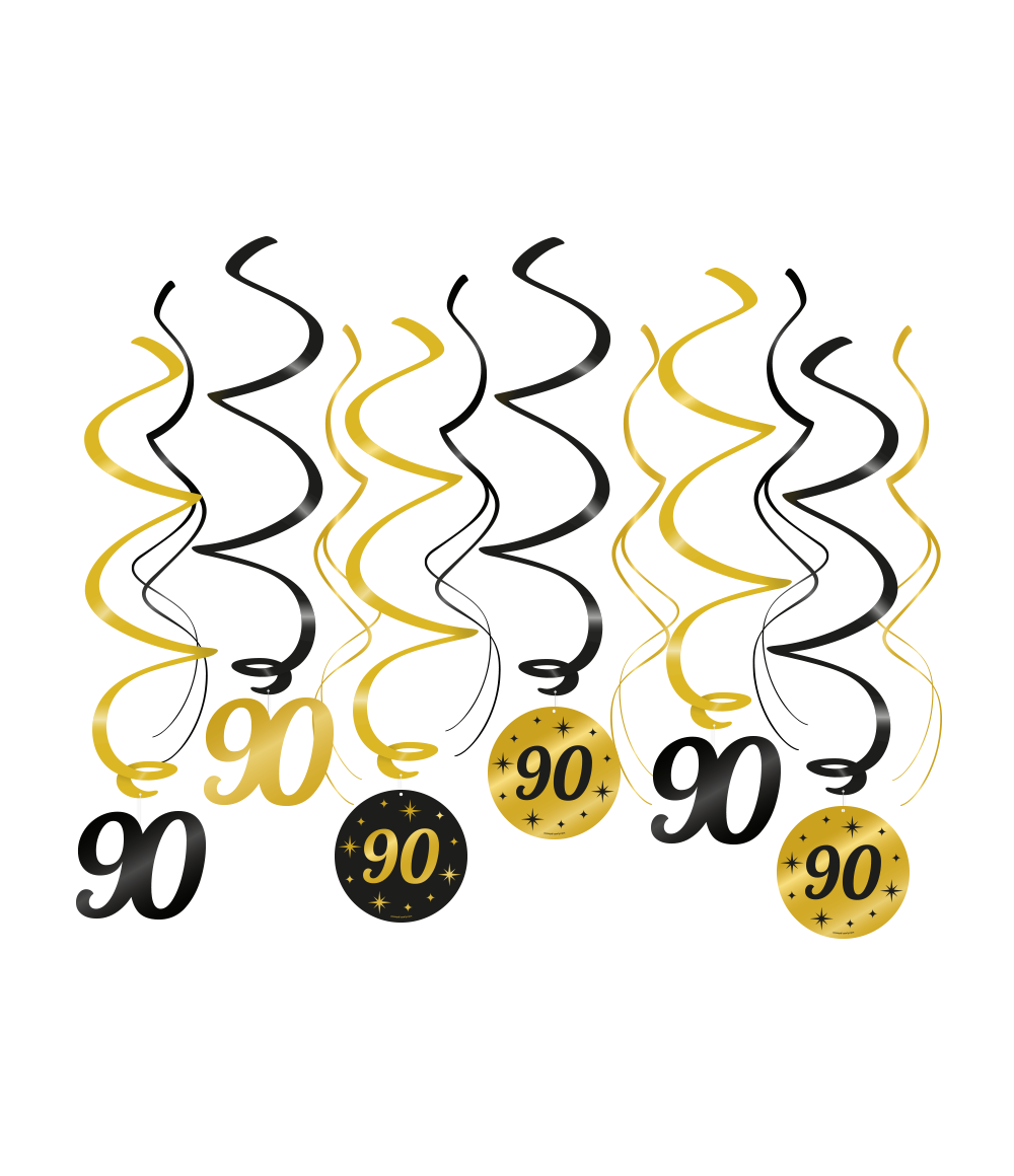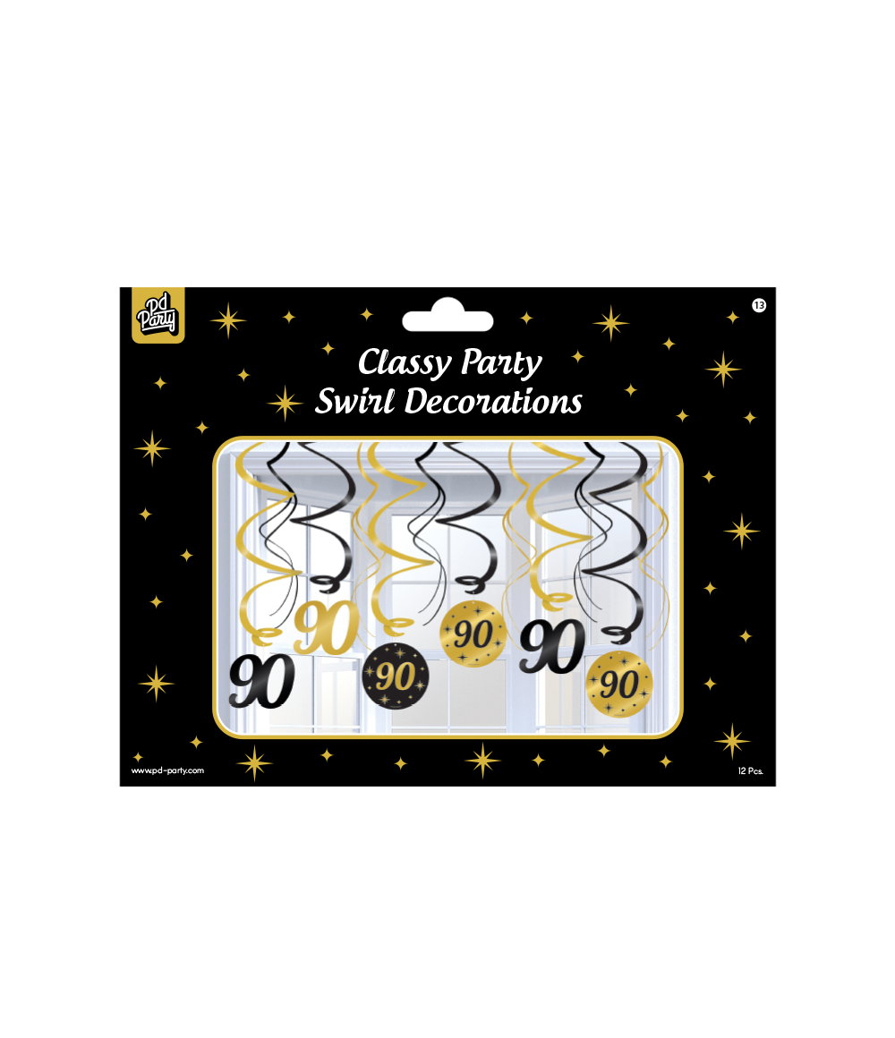 Paperdreams Party swirls 90 zwart/goud 12st - Vekemans Feestwinkel