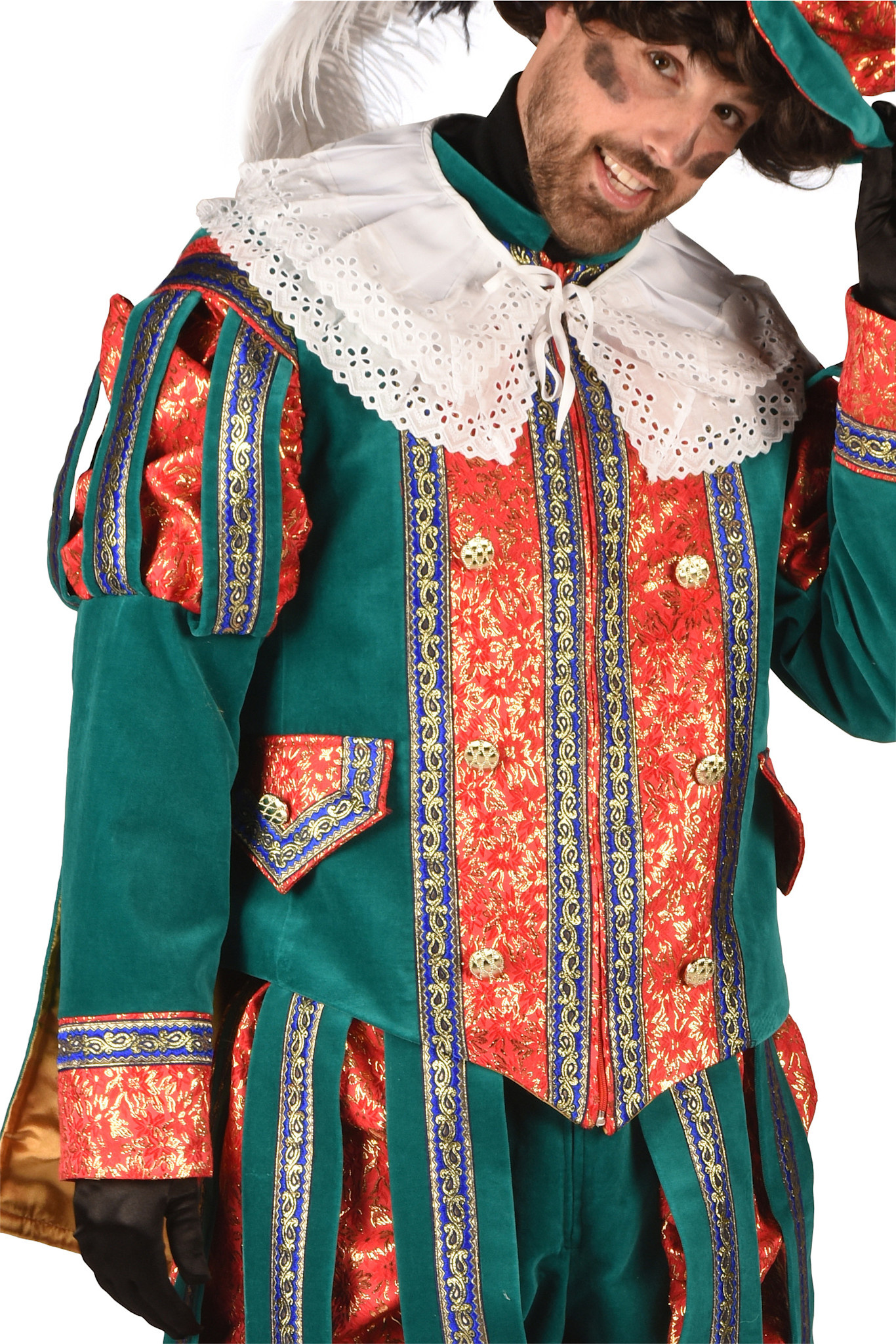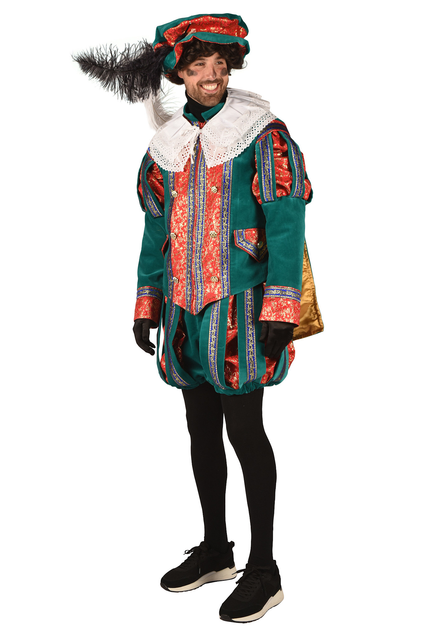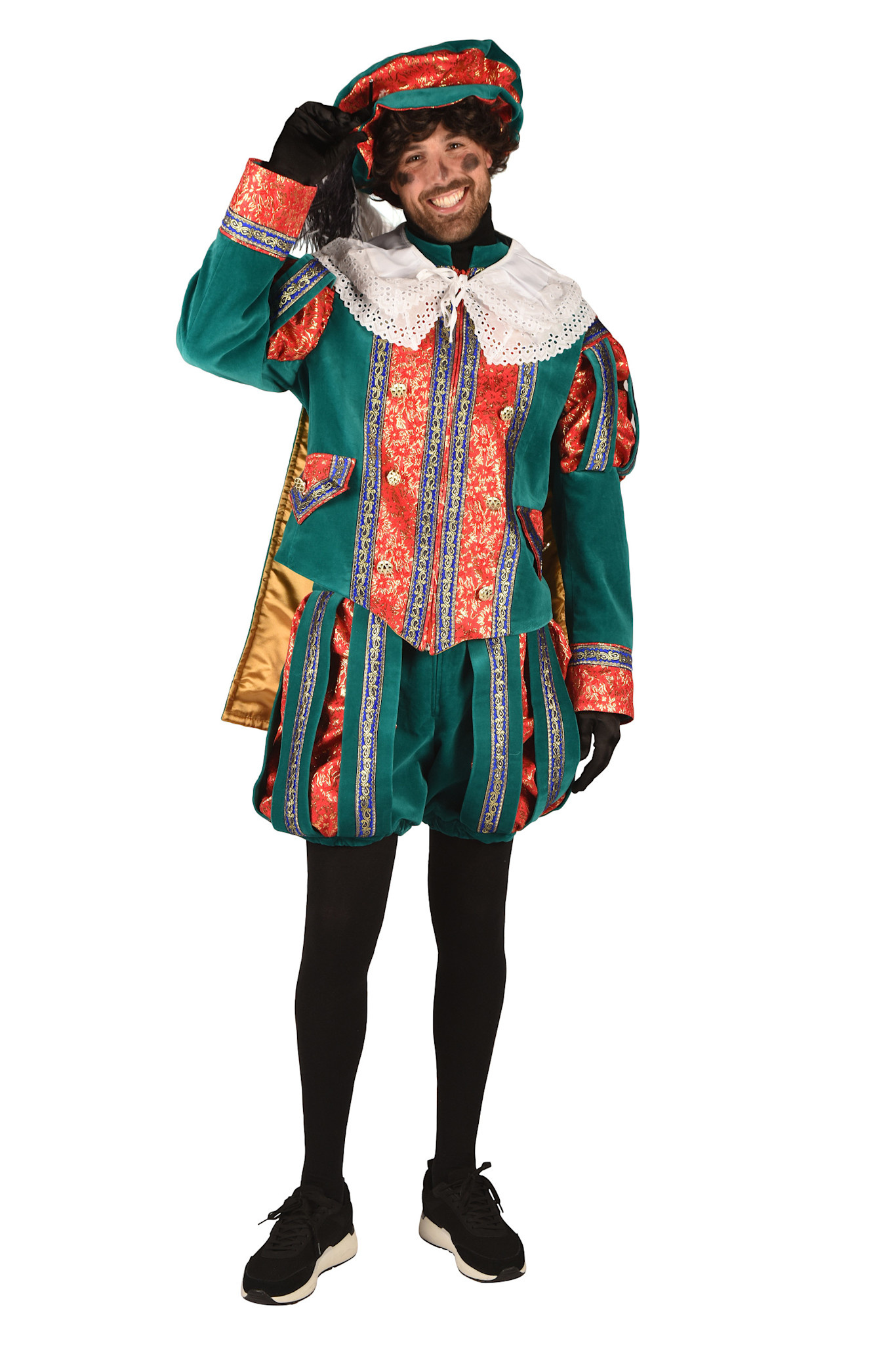 - Luxe Piet kostuum Zaragossa in groen/rood met goudaccenten