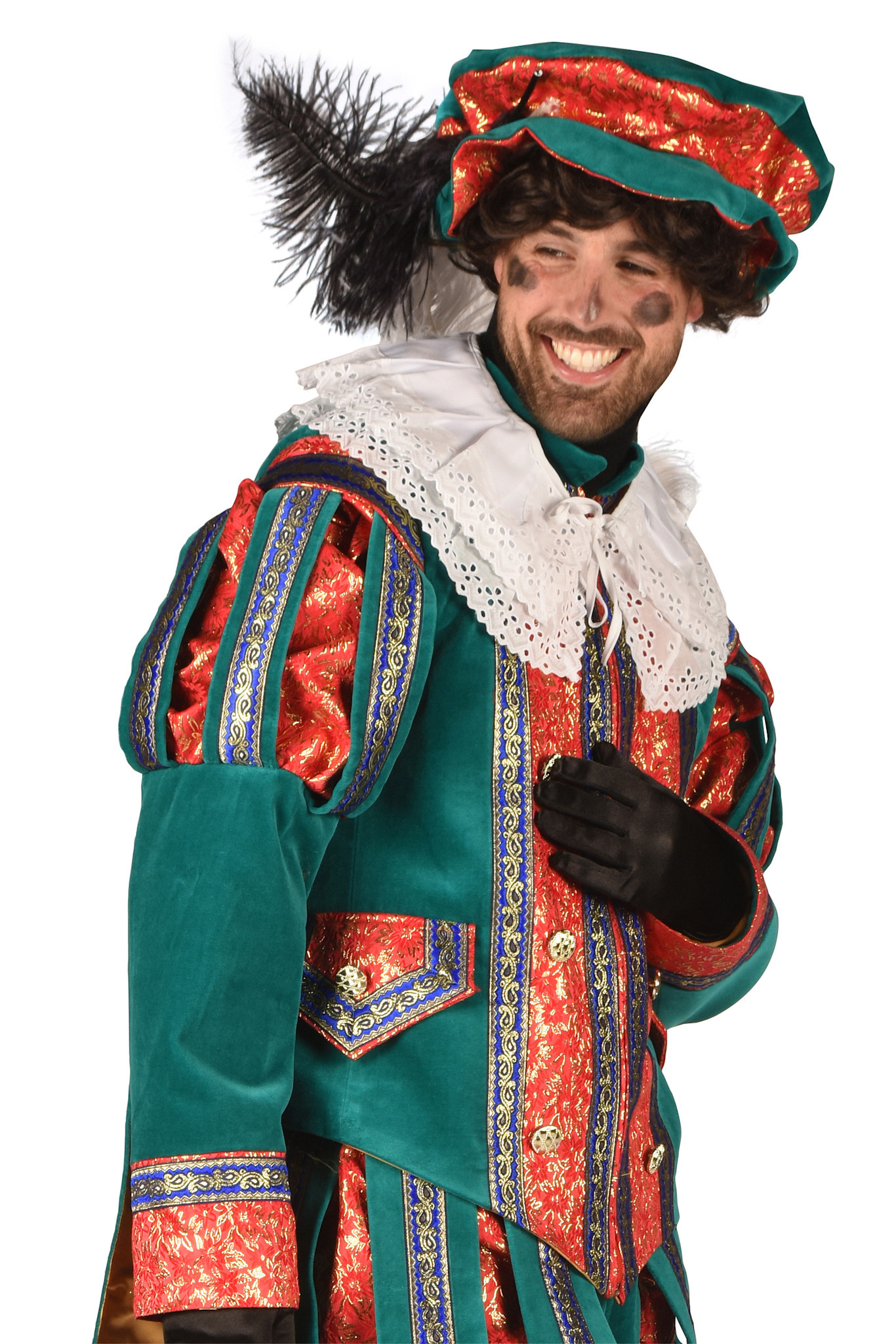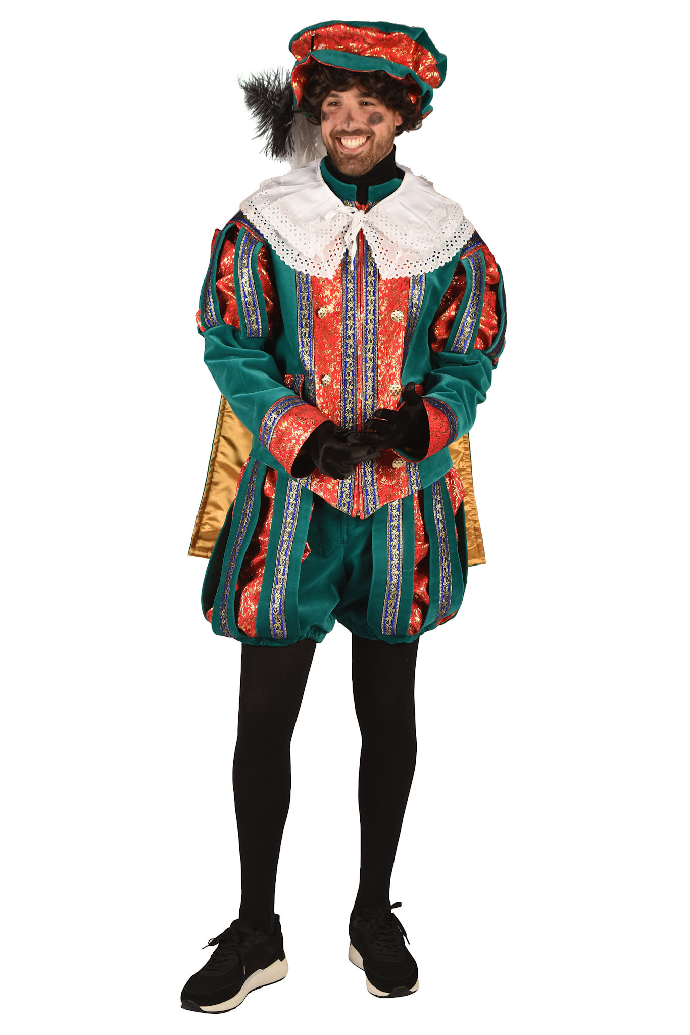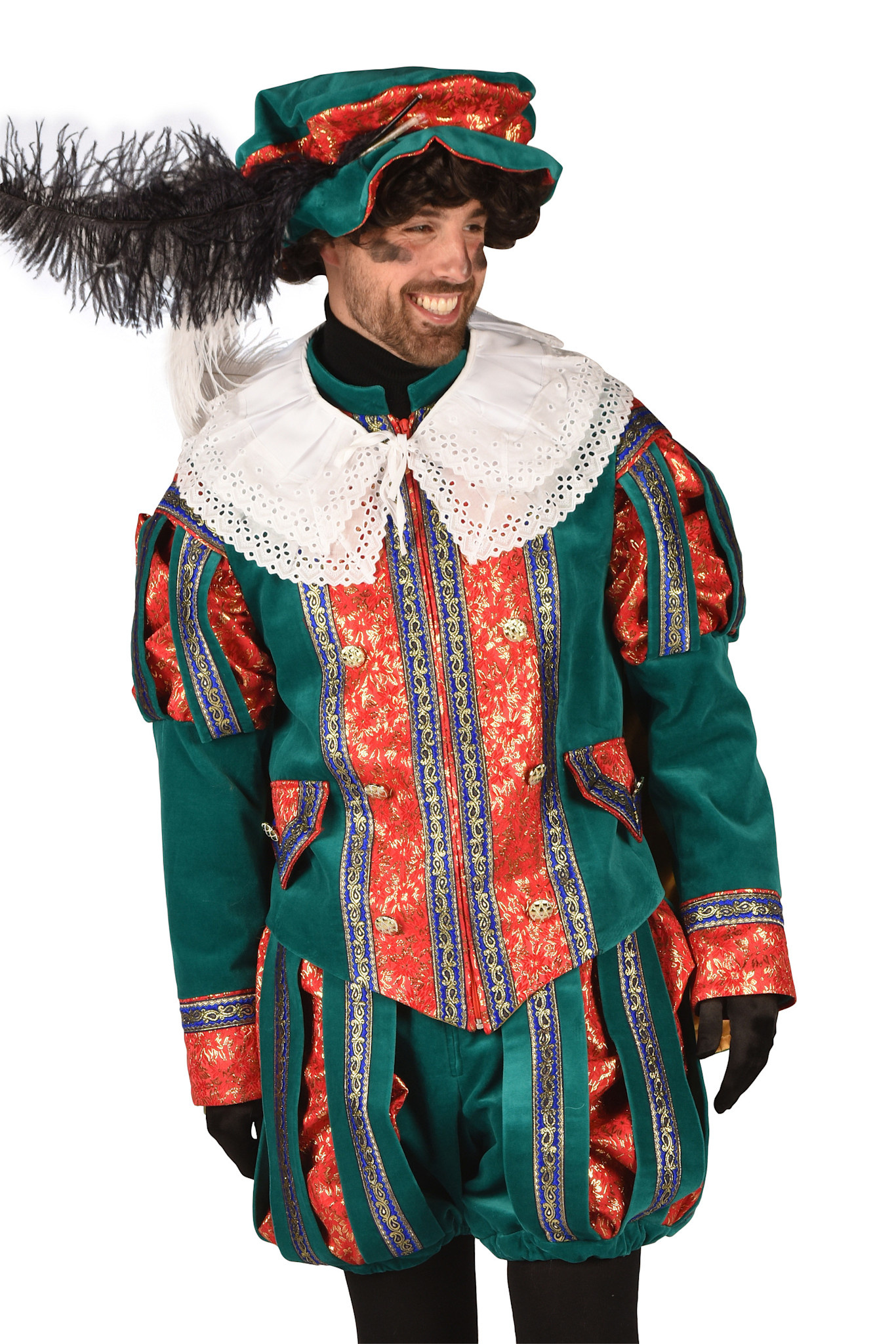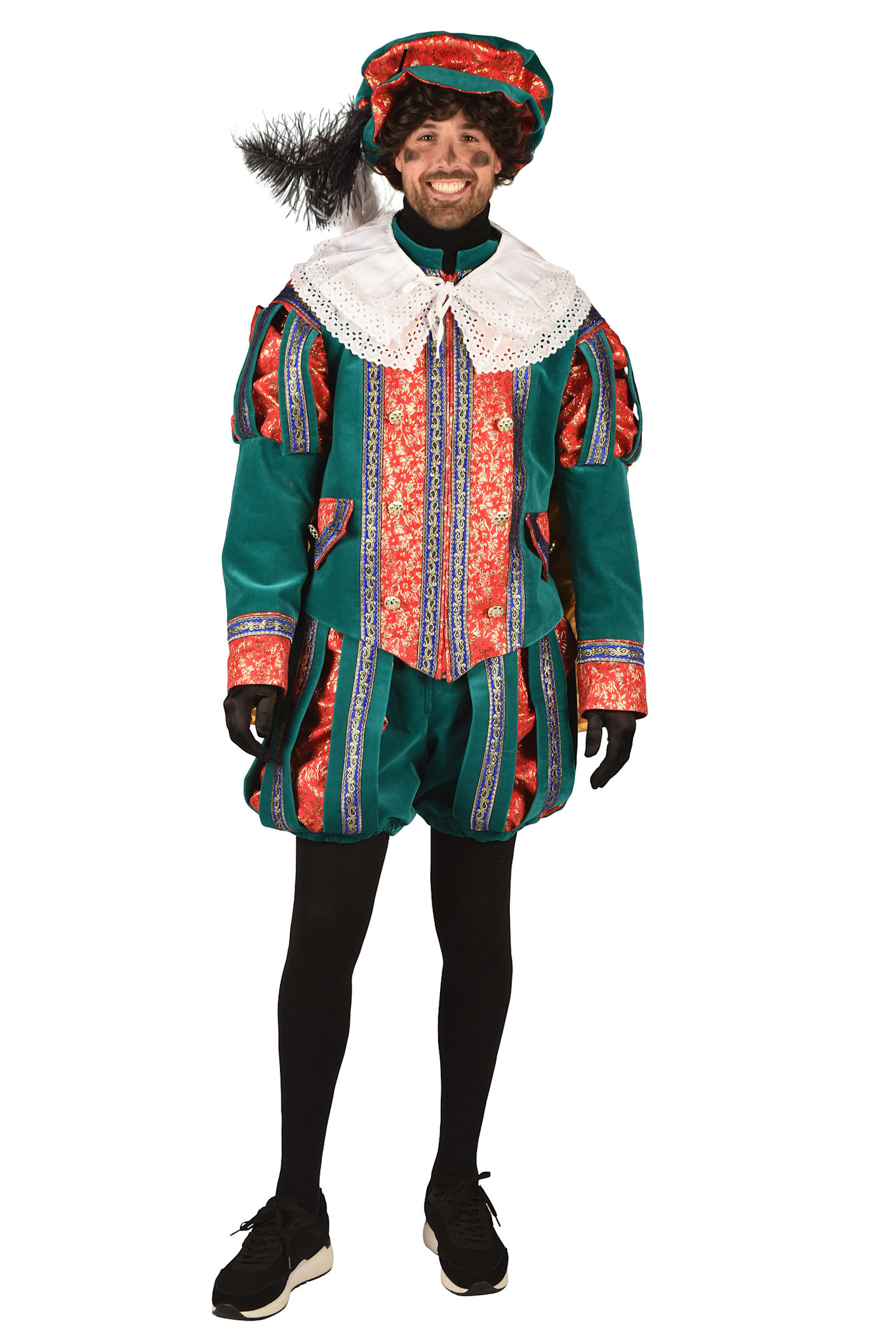 - Luxe Piet kostuum Zaragossa in groen/rood met goudaccenten