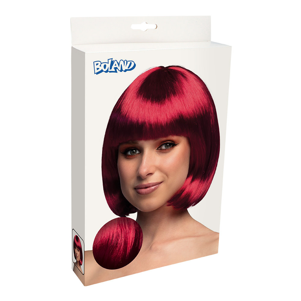 Met de Pruik Cabaret Robijnrood kies je voor een krachtige en glamoureuze uitstraling in één beweging. De dieprode kleur en strakke boblijn geven jouw outfit een luxueuze en sensuele touch.
