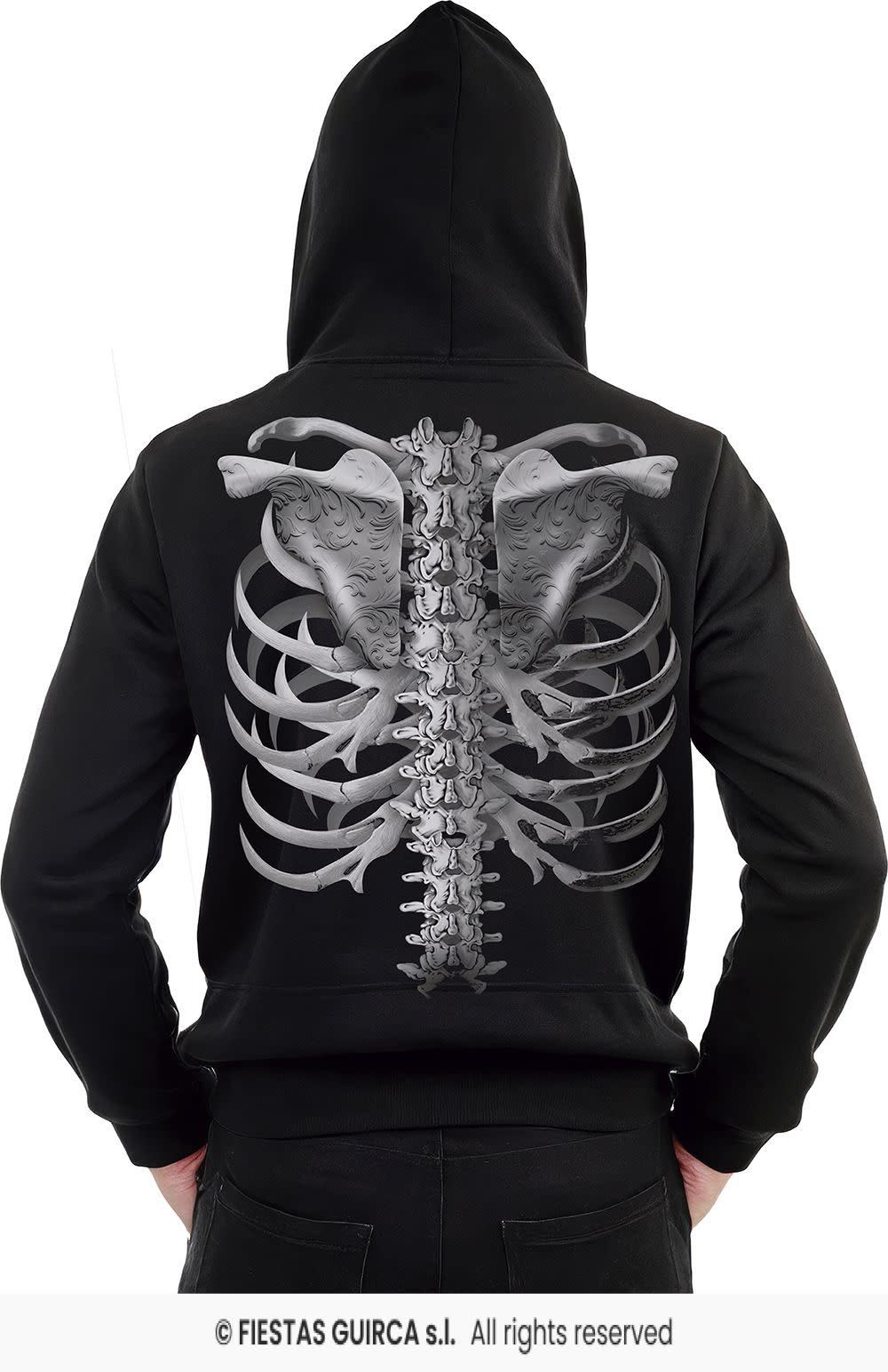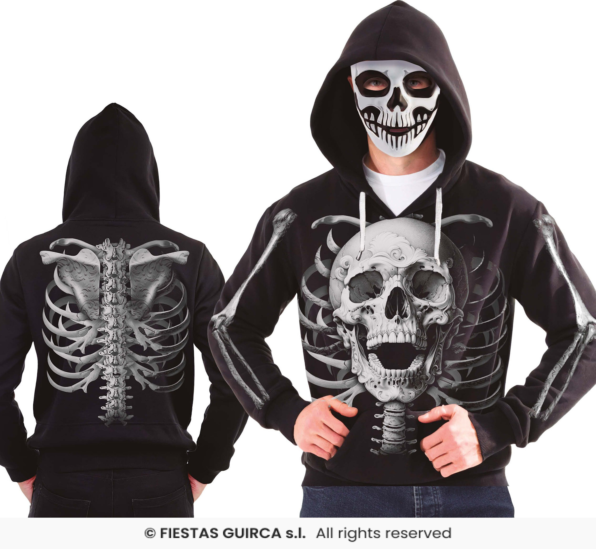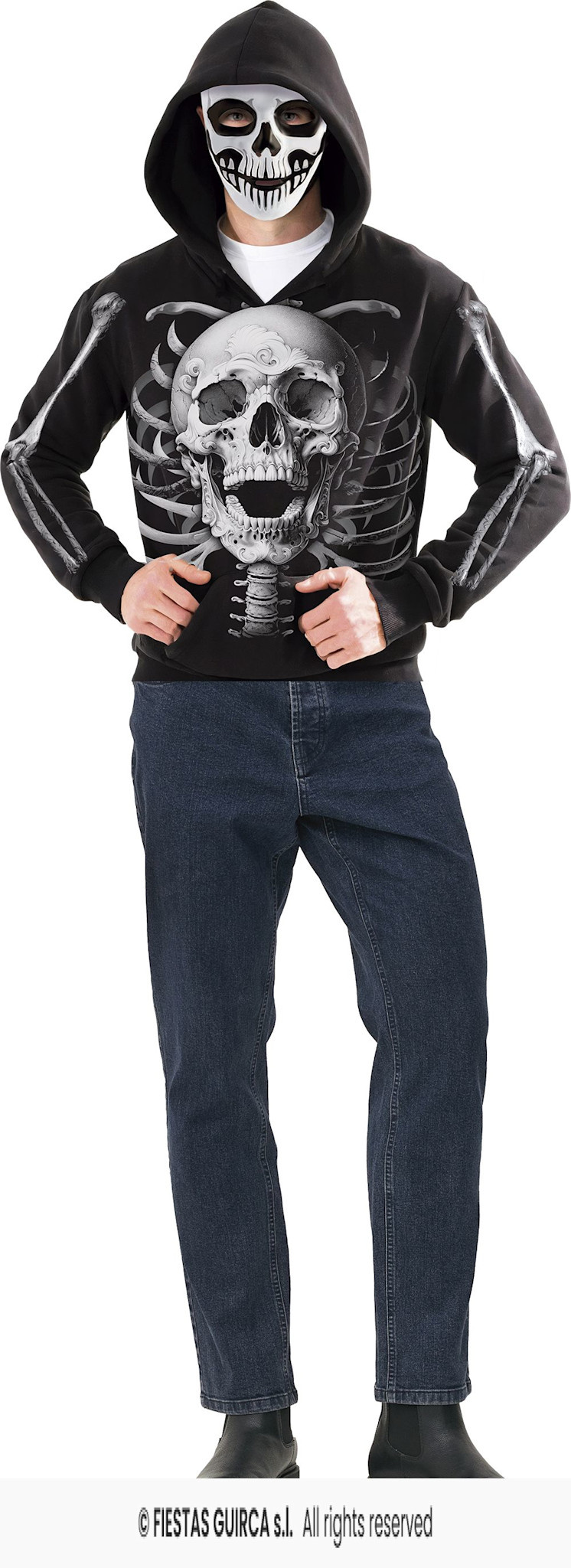 Deze zwarte hoodie met skeletprint is de perfecte keuze voor wie snel een angstaanjagende Halloween-look wil creëren. De voorkant toont een gedetailleerde schedel met ribbenkast, terwijl de achterkant is bedrukt met een ruggengraat en ribben – super realistisch en opvallend! De lange mouwen hebben botprints die je outfit compleet maken. De set wordt geleverd met een bijpassend skeletmasker, zodat je in één keer klaar bent voor elk Halloweenfeest, spooktocht of thema-event