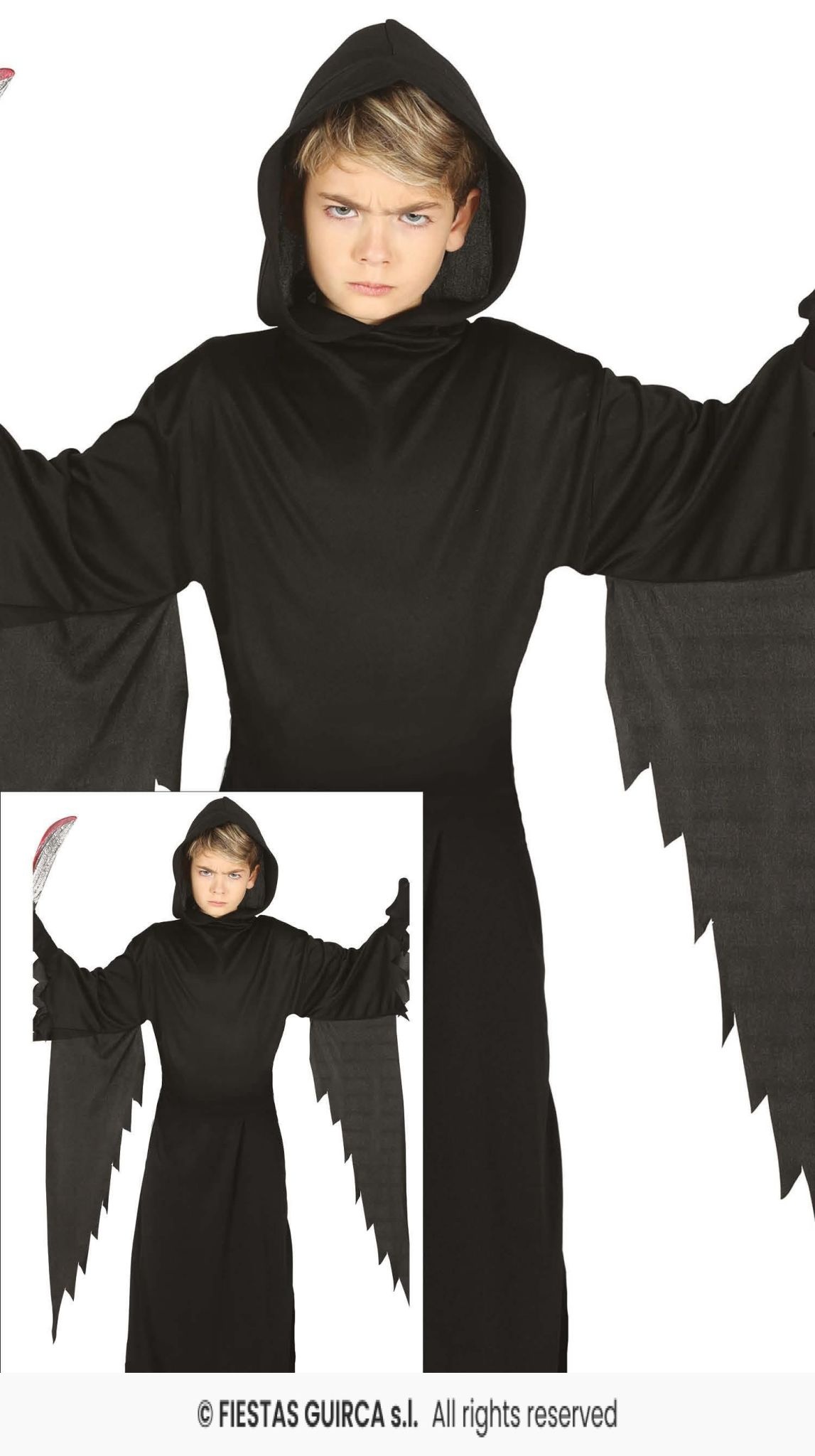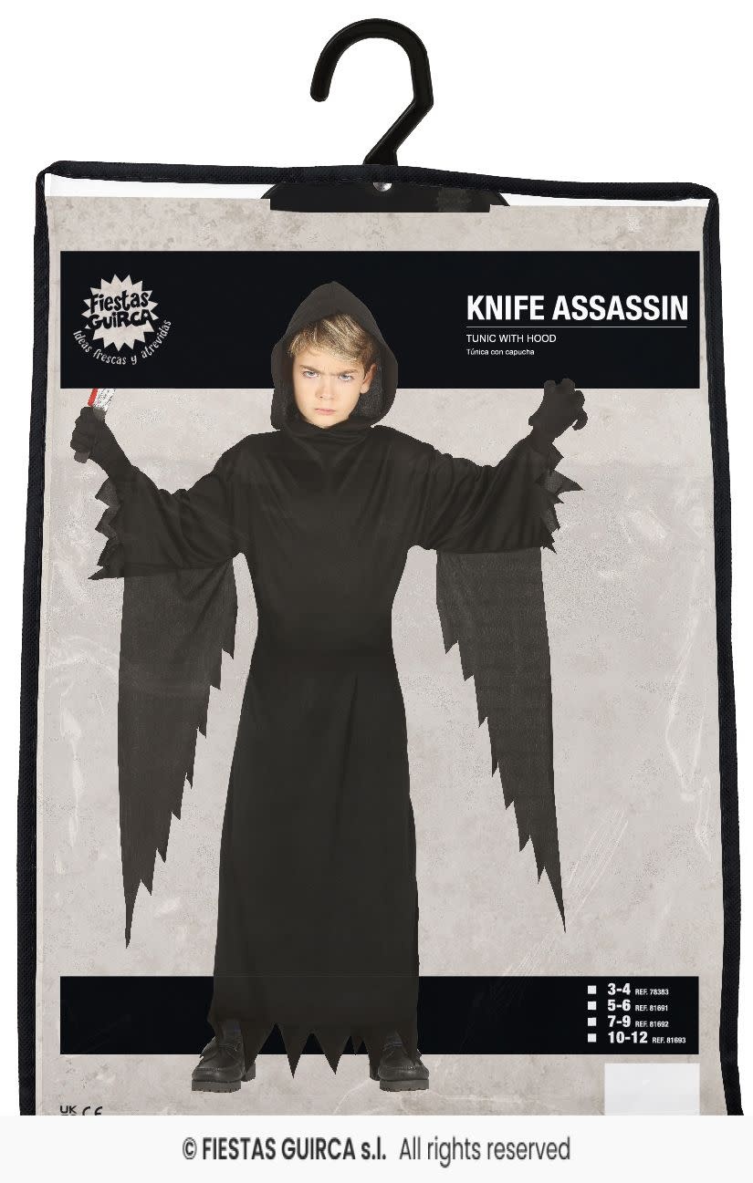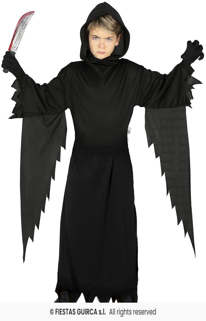 Creëer een angstaanjagende look met deze zwarte tuniek met kap. Deze lange, zwarte tuniek is perfect voor Halloween of andere verkleedfeesten en biedt een mysterieus en spookachtig uiterlijk. De wijde mouwen en de puntige afwerking aan de randen zorgen voor een extra griezelig effect. Het kostuum is eenvoudig en comfortabel om te dragen. Let op: de accessoires die op de foto worden getoond, zoals het mes, zijn niet inbegrepen.